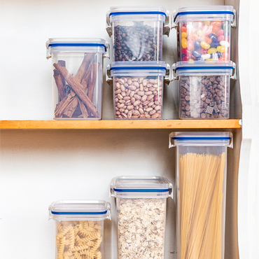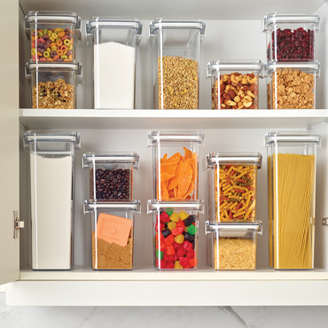 Drylock modular pantry organization will optimize your storage space. Made from Tritan, Drylock is crystal clear and unbreakable. The latching lid stacks evenly and provides an airtight seal to ensure freshness. The contoured base is easy to handle and pour from.